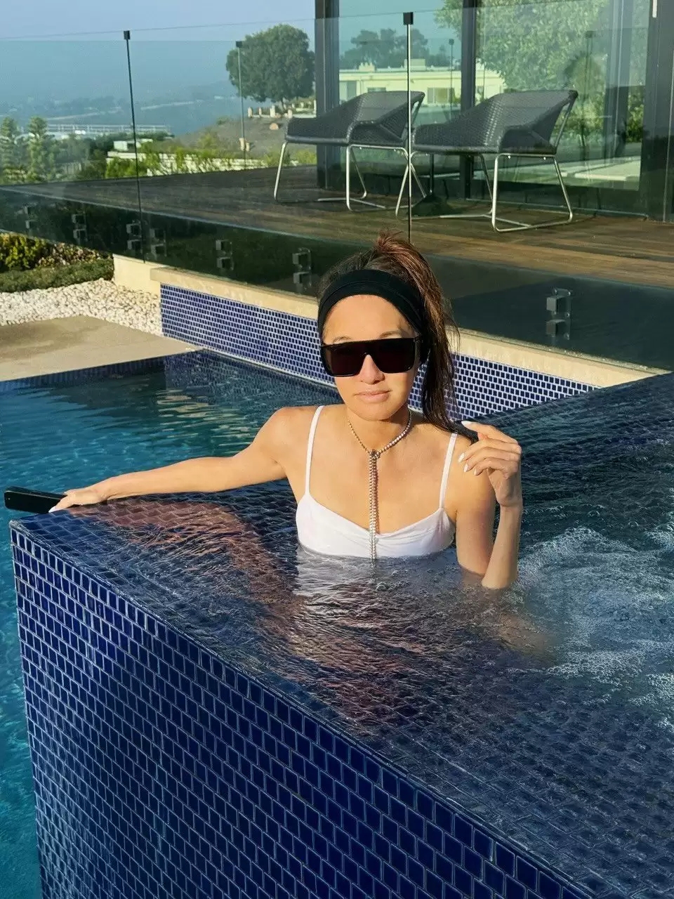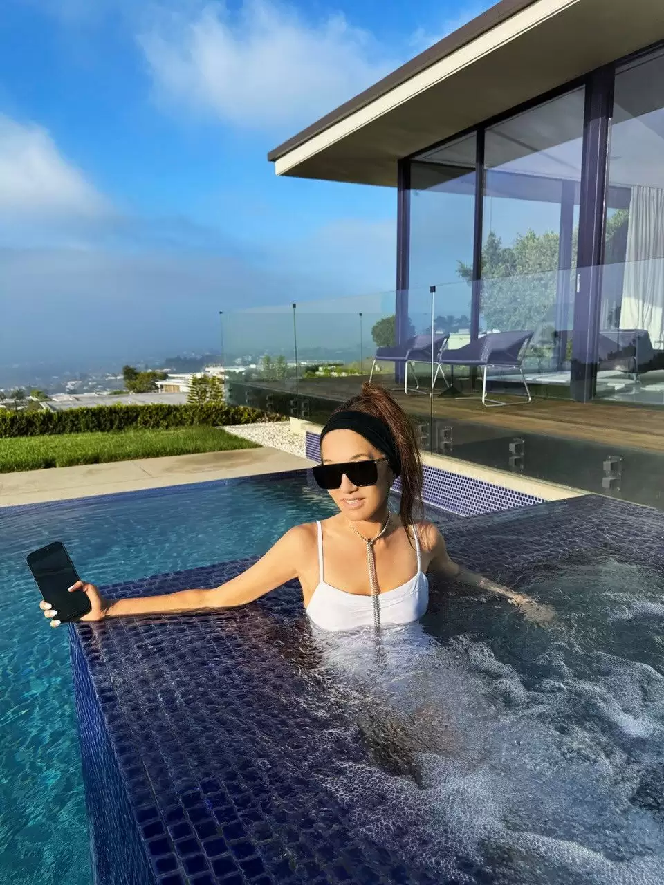Для своїх каліфорнійських кадрів Вера обрала стильний білий суцільний купальник. До нього вона додала чорну пов’язку на голову, сонцезахисні окуляри та довге кольє, яке ефектно виглядало на тлі води. У підписі вона лаконічно зазначила: “Басейн з краєвидом. Каліфорнійська мрія”. І під цим підписом – тисячі лайків і коментарів. Бо як втриматись, щоб не залишити комплімент.