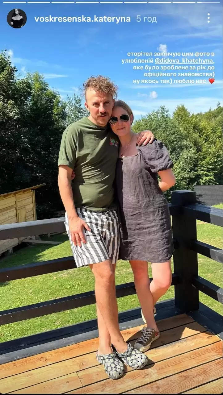 Воскресенська вперше показала кілька спільних із Клопотенком фото. На одному з них пара позує за кілька років до початку романтичих стосунків. Попри те, що пара відсвяткувала рік стосунків, Клопотенко жодного разу за цей час не зізнавався, що в нього є дівчина.