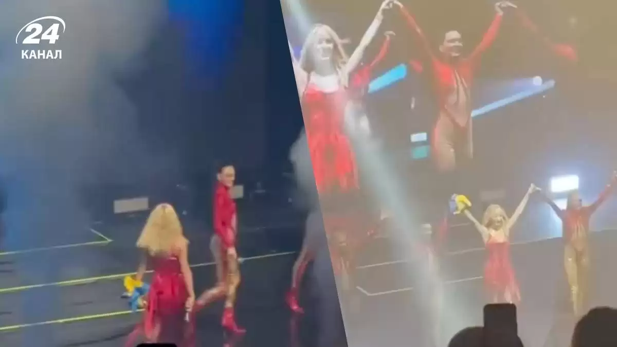 “Під кінець концерту їй дали український прапор, і на цьому моменті завмерли, мабуть, усі в очікуванні, що вона його розгорне та щось скаже, але ні, зім’ятим потримала в руках і швидко передала танцівниці, щоб та унесла його”, – написала очевидиця події.